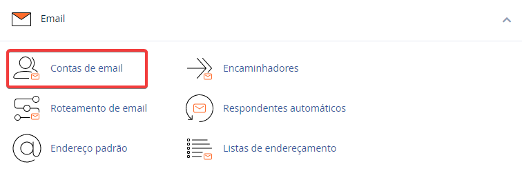 - Navegue até a seção "Email" e clique em "Contas de e-mail".